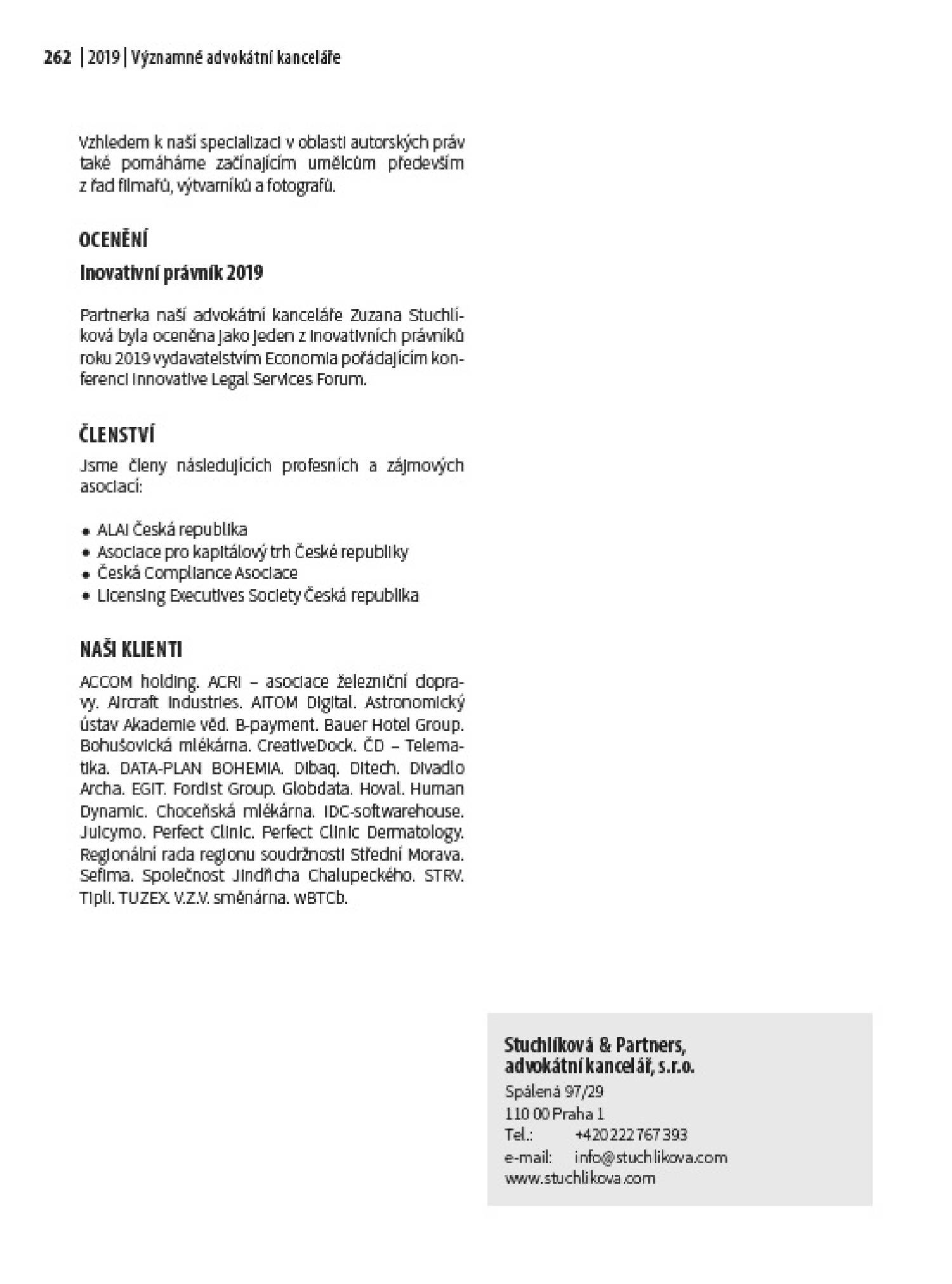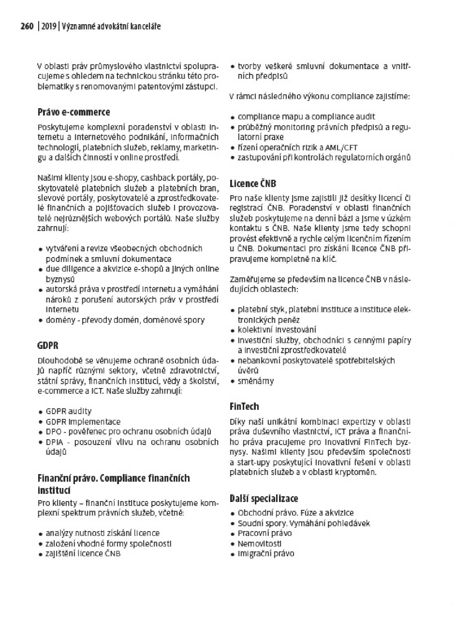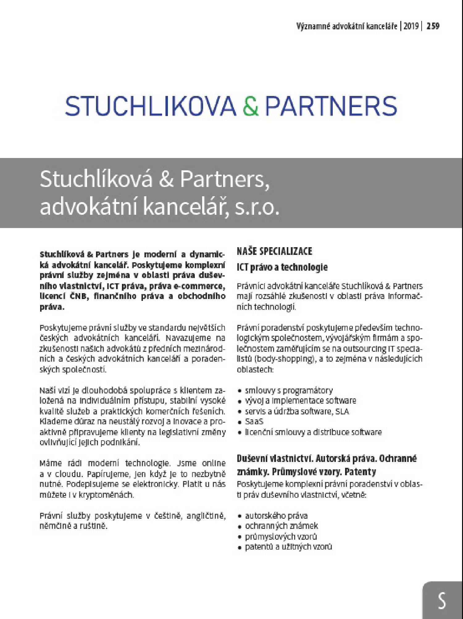 Naše advokátní kancelář byla zařazena do Ročenky významných advokátních kanceláří pro rok 2019 každoročně publikované společností epravo.cz.