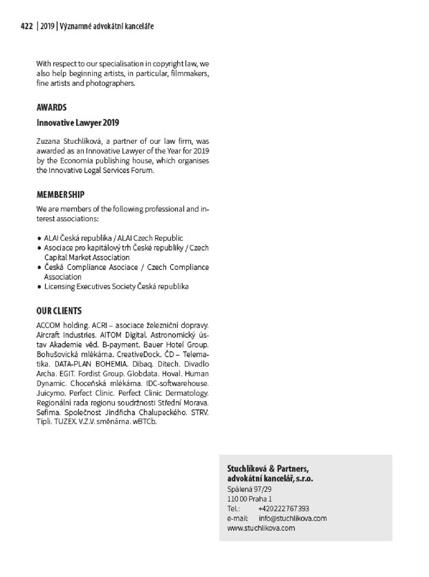 Our law firm has been included in the Year Book of Leading Law Firms for 2019 published annually by epravo.cz.